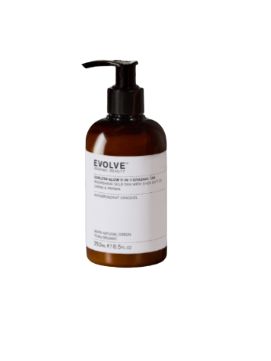 Mit der veganen Sunless Glow Body Lotion von Evolve Organic Beauty wird der Traum von einer ohne Sonneneinwirkung gleichmäßig gebräunten, glatten Haut und einer haltbaren Bräune wahr.