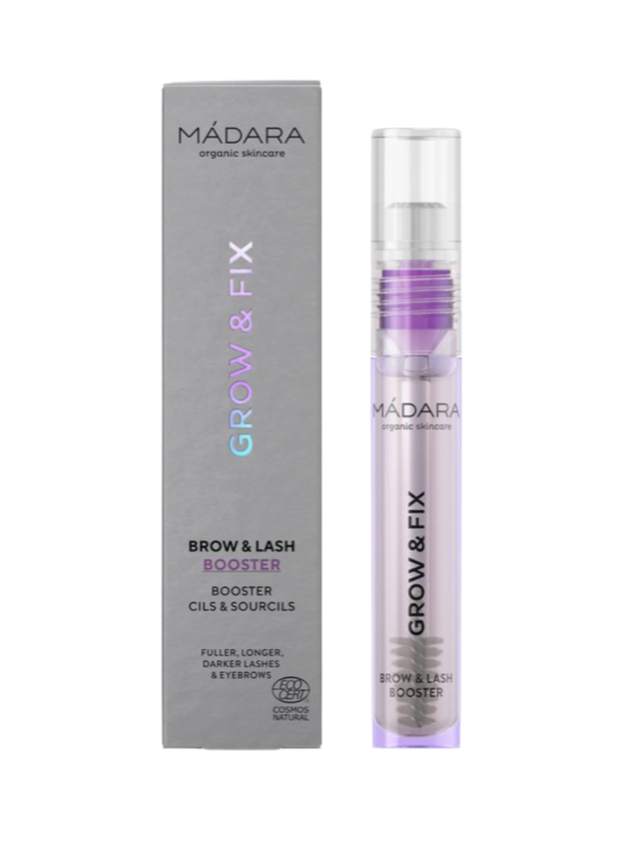 Der Grow & Fix Brow & Lash Booster ist ein doppelt wirksames Serum-Gel, das feine Härchen kräftigt, voller wirken lässt und zugleich in Form bringt. Natürliche Peptide und Koffein kurbeln die Mikrozirkulation an, während ein vitaminreicher Extrakt aus nordischem Pfifferling die Haarwurzel mit B-Vitaminen versorgt. Biopolymere legen sich wie ein unsichtbares Netz um jedes Härchen, verleihen sofortige Fülle und halten widerspenstige Brauen in Position. Das Ergebnis: sichtbar dichtere, glänzendere Brauen und Wimpern – ganz ohne synthetische Wachse oder Mikroplastik. Vegan, augenärztlich getestet und auch für empfindliche Augen geeignet.